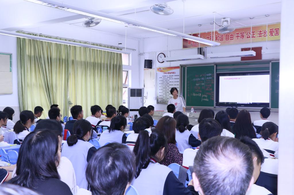 11月20日,在暖冬的金色阳光伴随下,365英国上市首届17名研究生走进广州市番禺禺山高级中学思政课,倾听了高一(7)班陈雪丽老师的《方向决定道路,道路决定命运》政治课。
